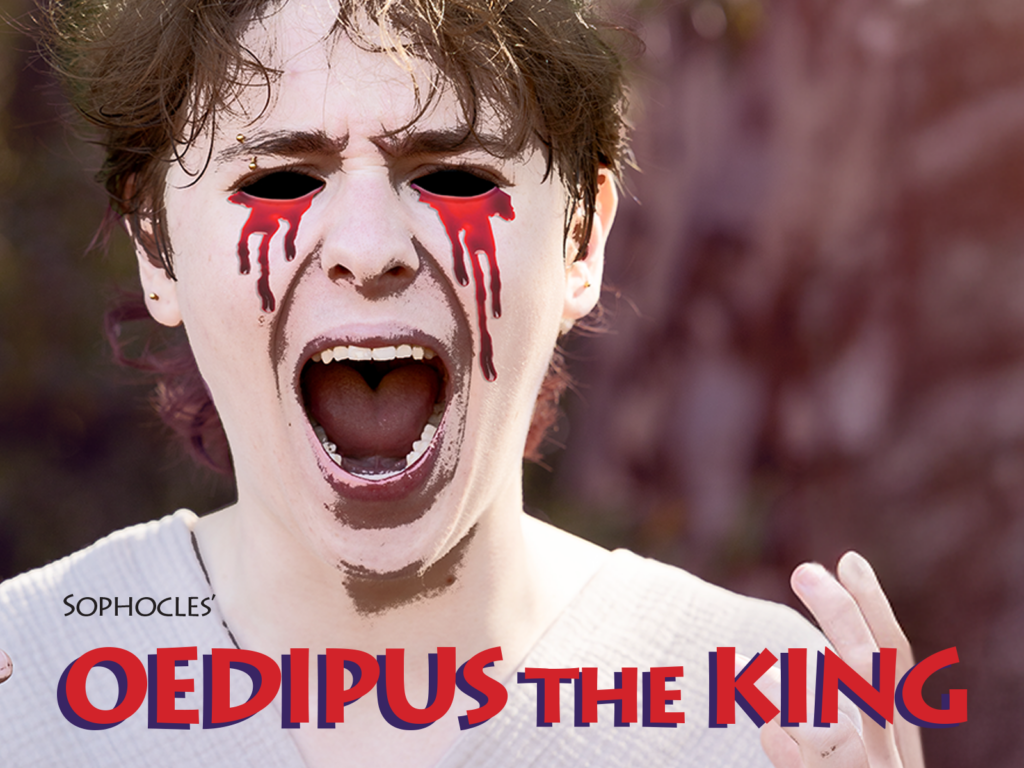 Oedipus, King of Thebes, Priest of Zeus, Creon, Oedipus’s brother-in-law, Jocasta, wife of Oedipus, sister of Creon, Teiresias, an old blind prophet, Chorus, citizens of Thebes, Corinth Messenger, Theban Shepherd, Palace Messenger, Guard, Antigone & Ismene, young daughters of Oedipus and Jocasta.